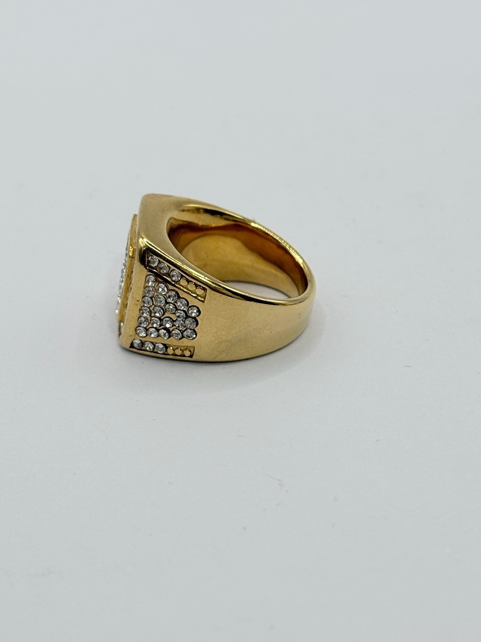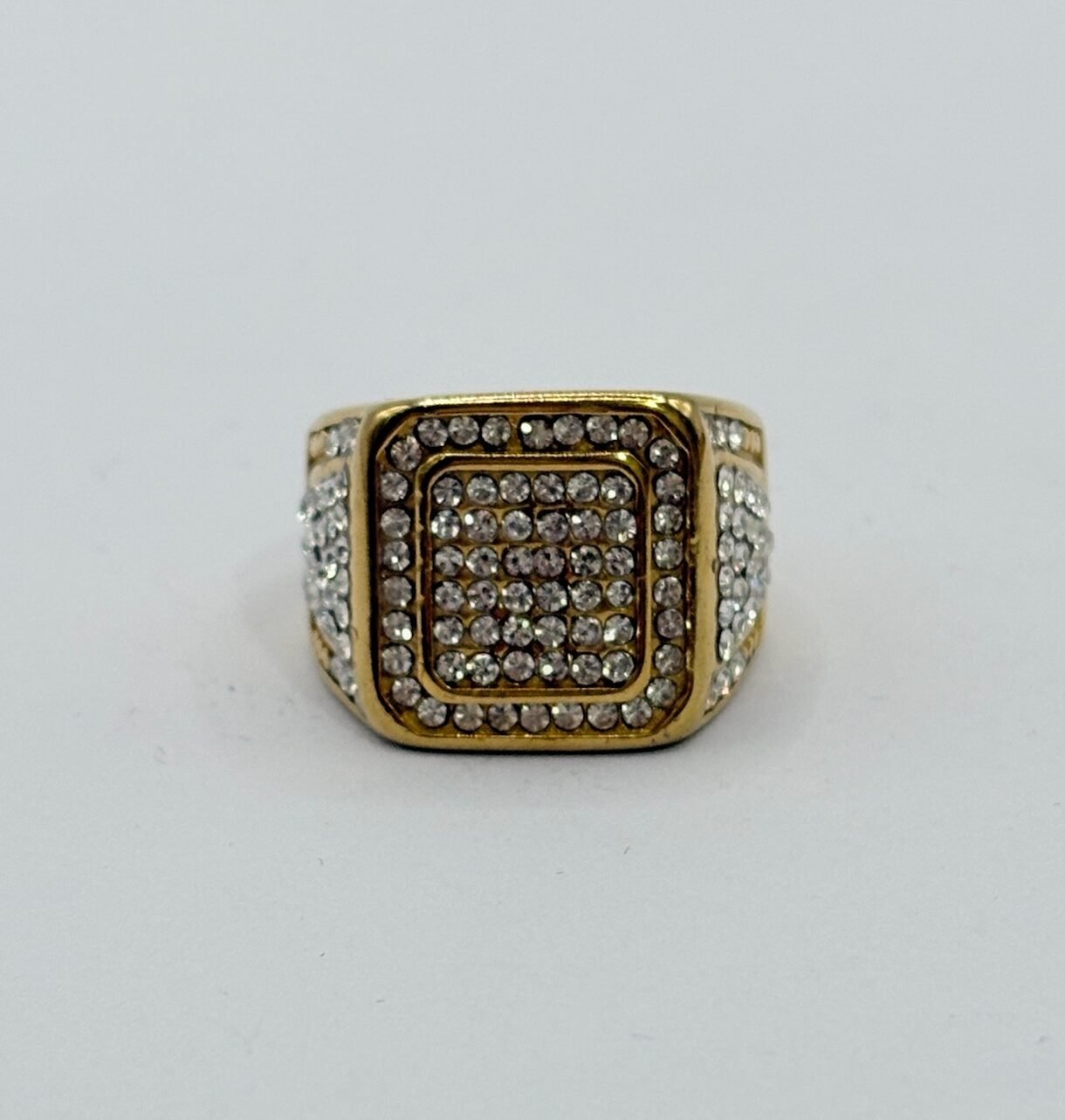 Anillo en Acero inoxidable dorado con circonitas delanteras y laterales