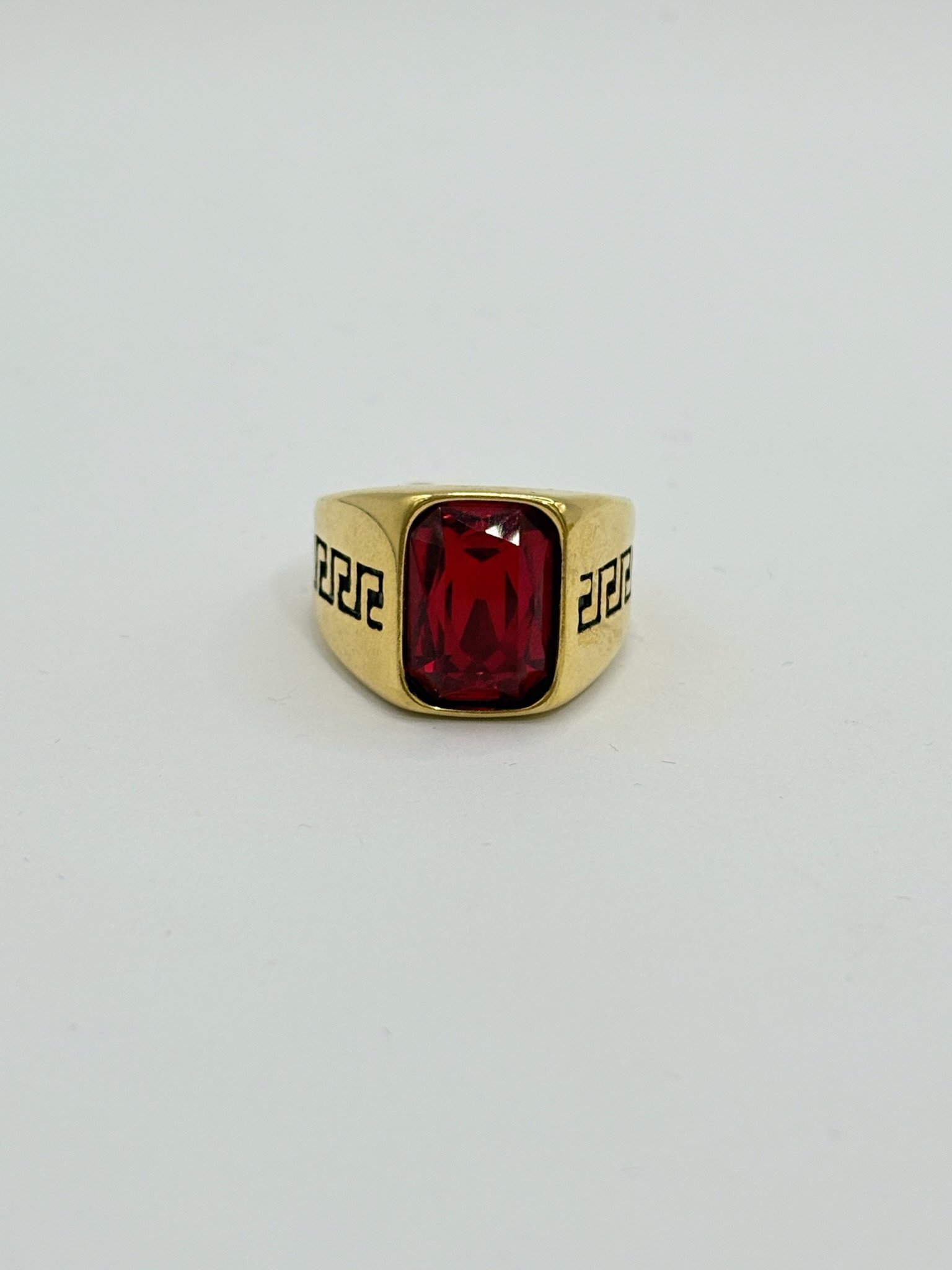 Anillo Cuadrado de Circonita Roja, en Acero Inoxidable Dorado.
