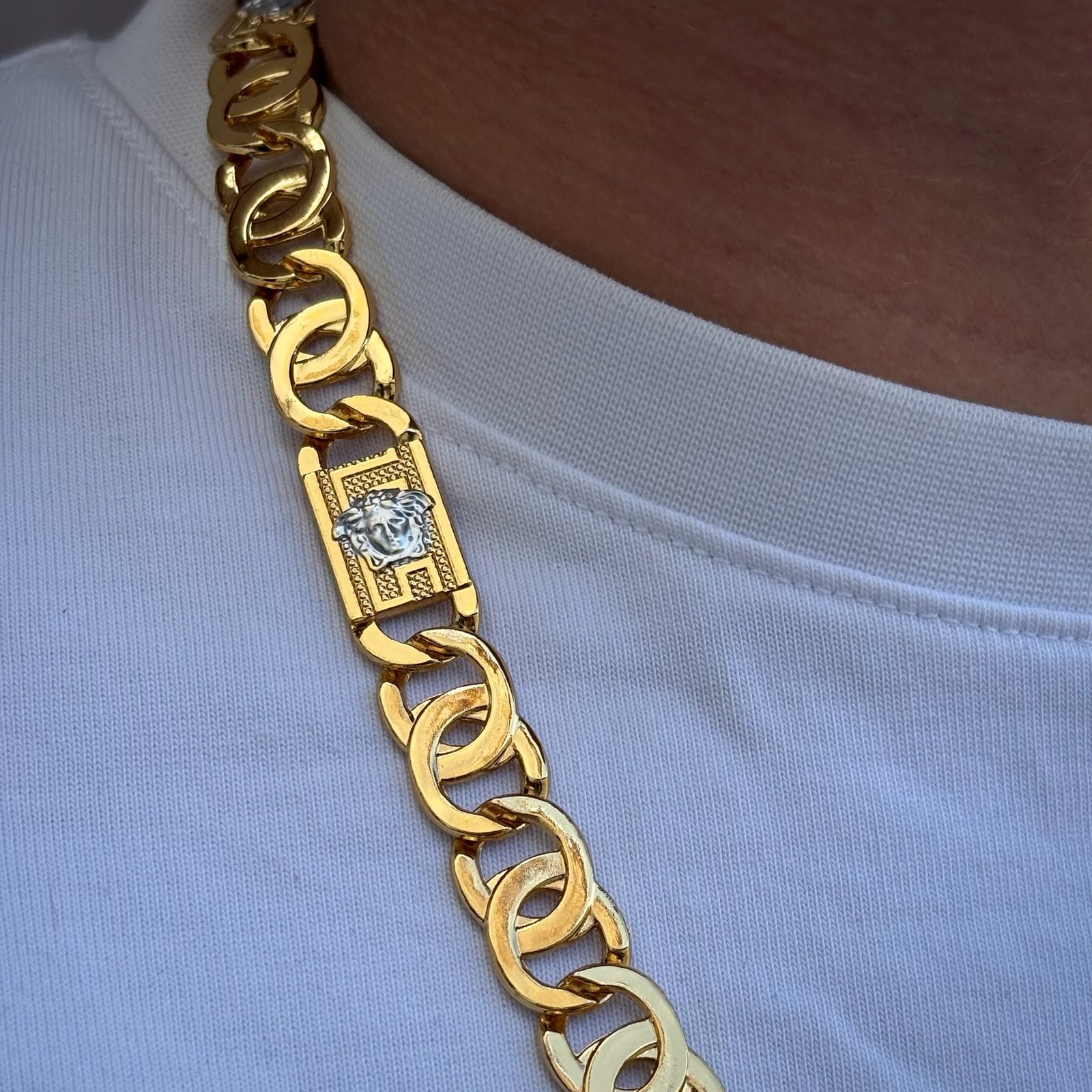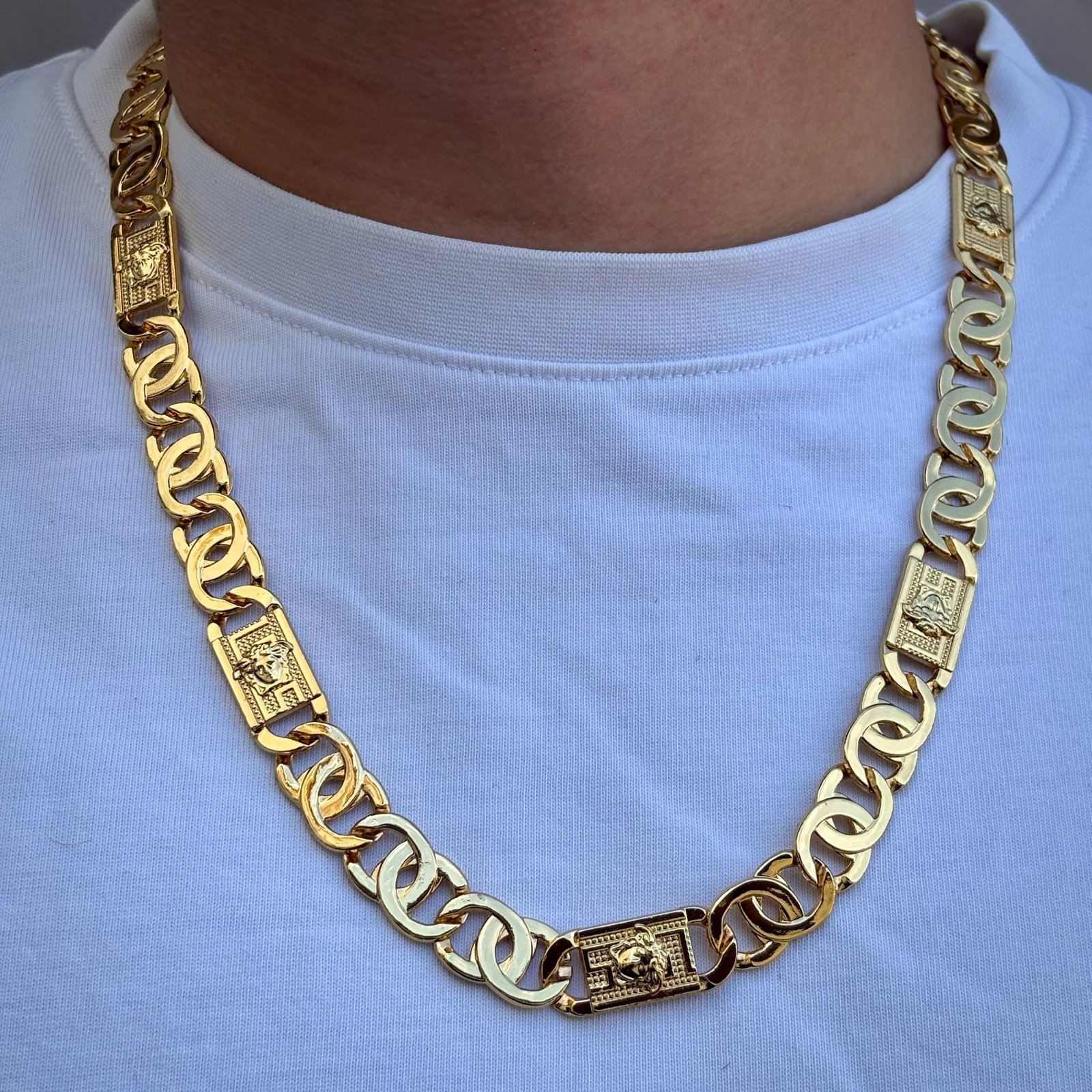Preciosa cadena de Ver-sace de 60 cm fabricada en acero inoxidable. Mide 14mm de grosor y es una de nuestras cadenas mas vendidas, ideal para llevarla sola sin medalla.