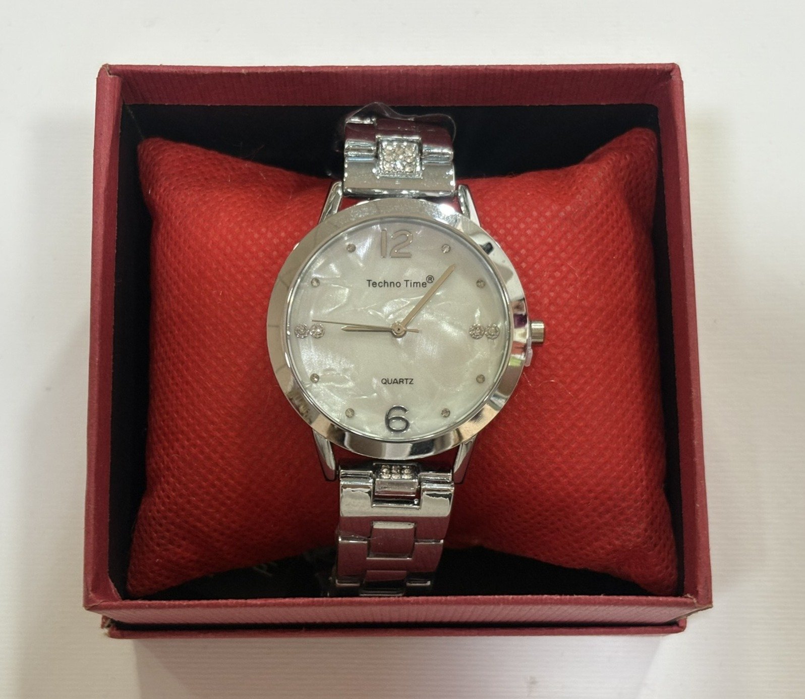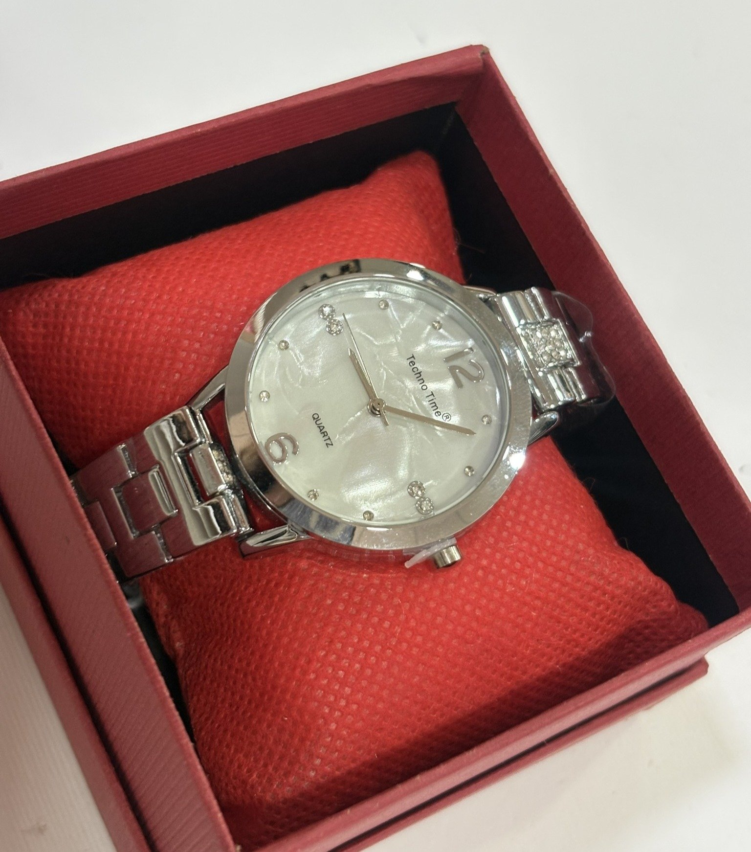 Reloj Techno Time de acero inoxidable, con diseño elegante y esfera clara con detalles brillantes que aportan un toque sofisticado. Un complemento moderno que combina estilo, precisión y elegancia para cualquier ocasión. ⌚✨
