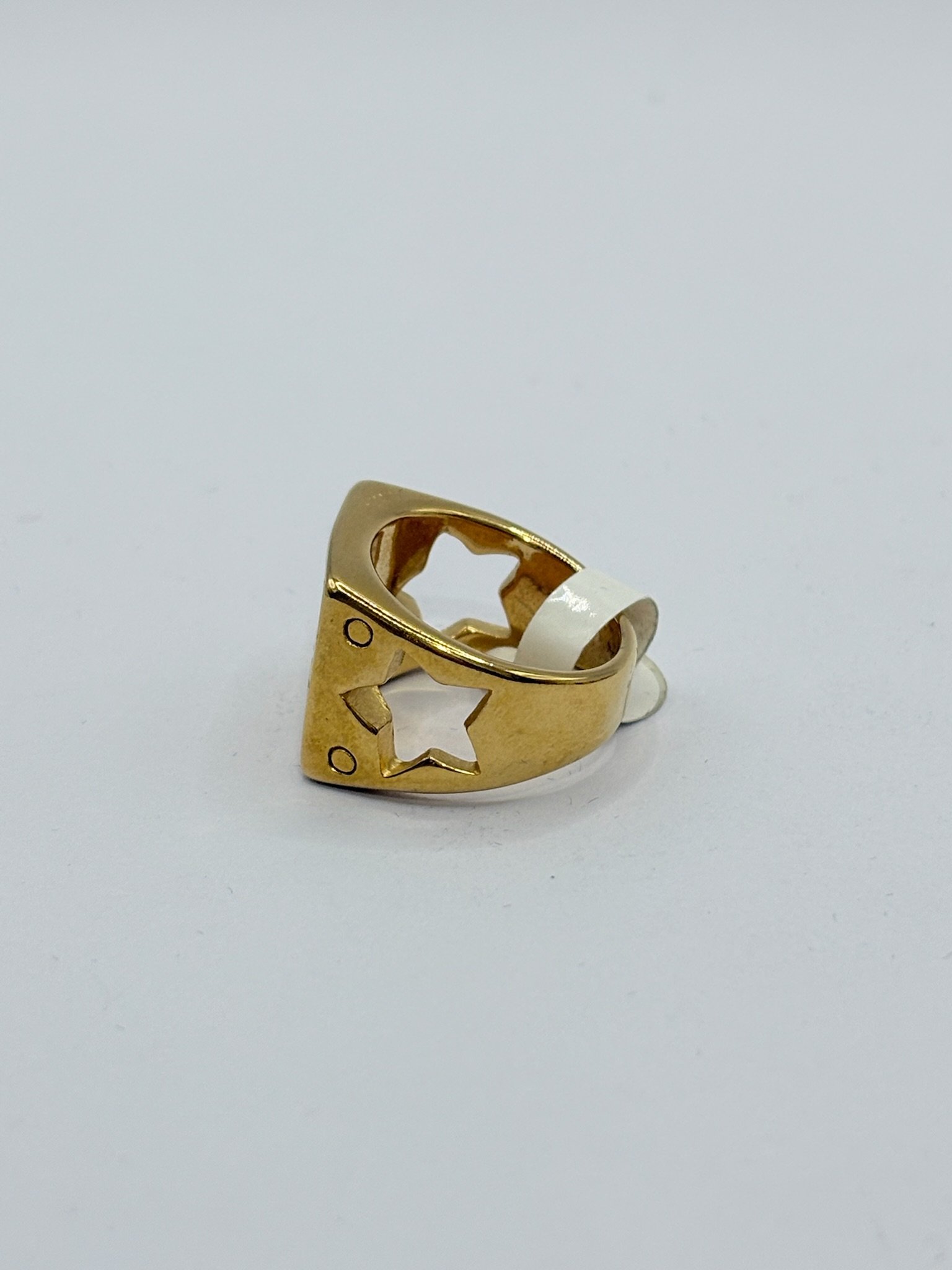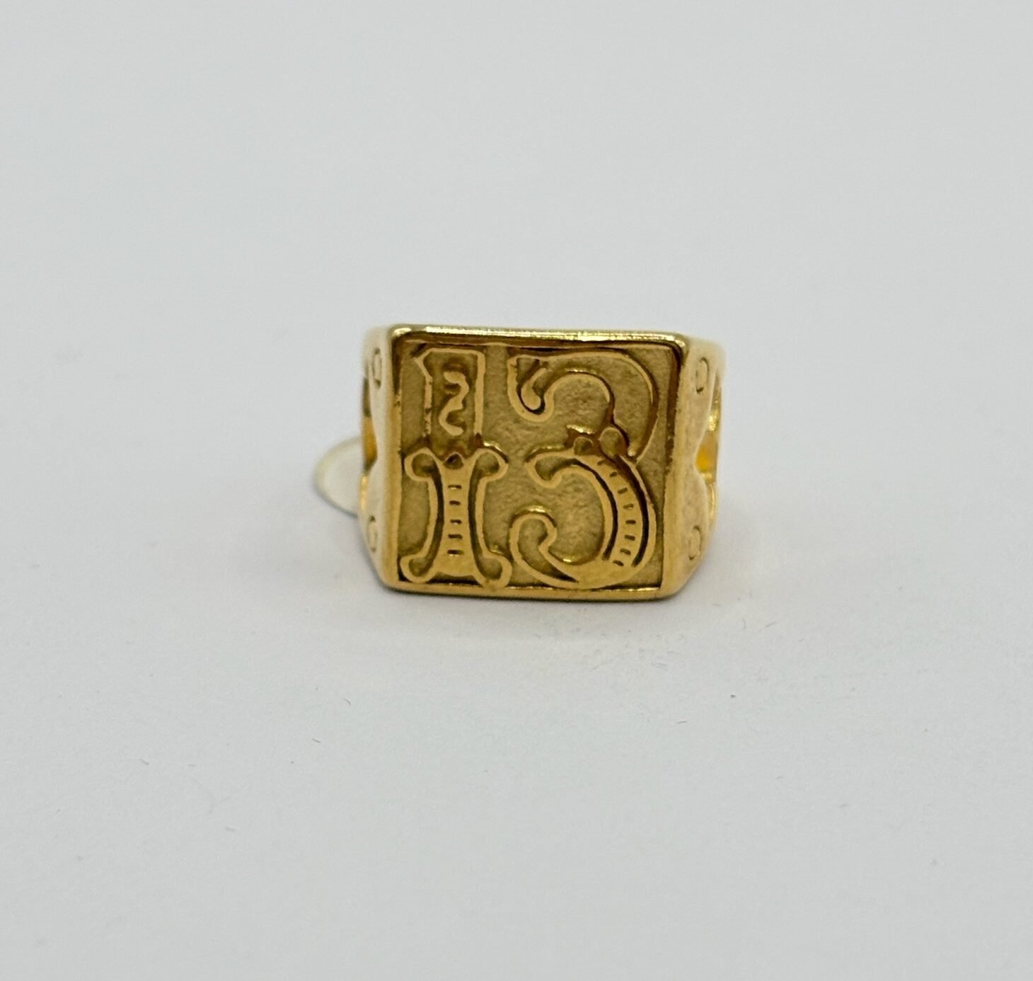 Anillo de acero inoxidable con acabado dorado, diseño elegante con número 13 en relieve y grabado decorativo. Una pieza con carácter, estilo único y presencia llamativa. ✨