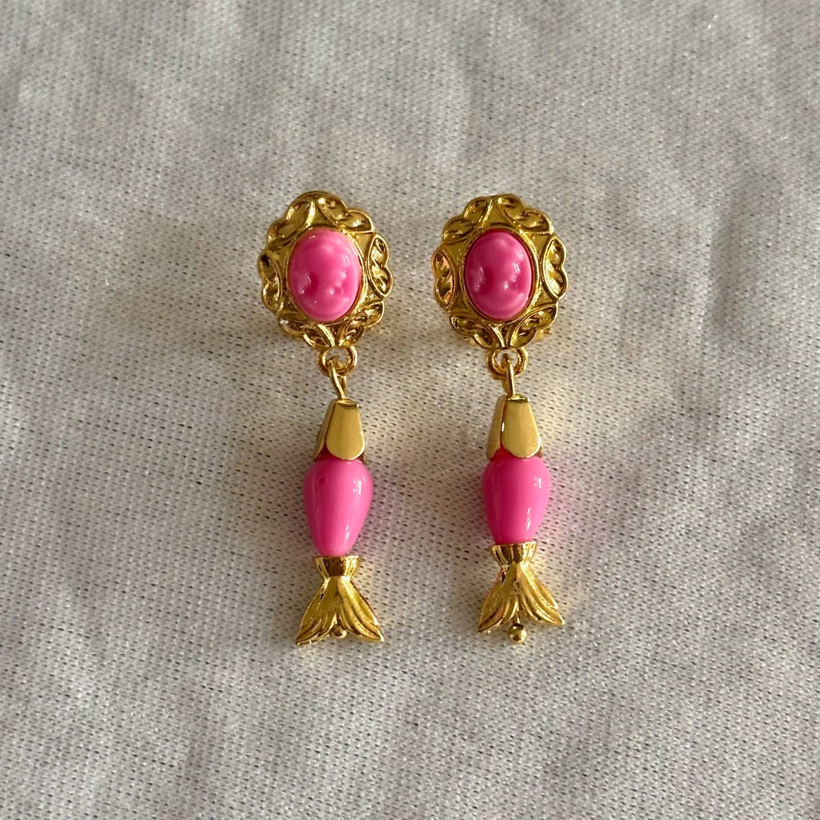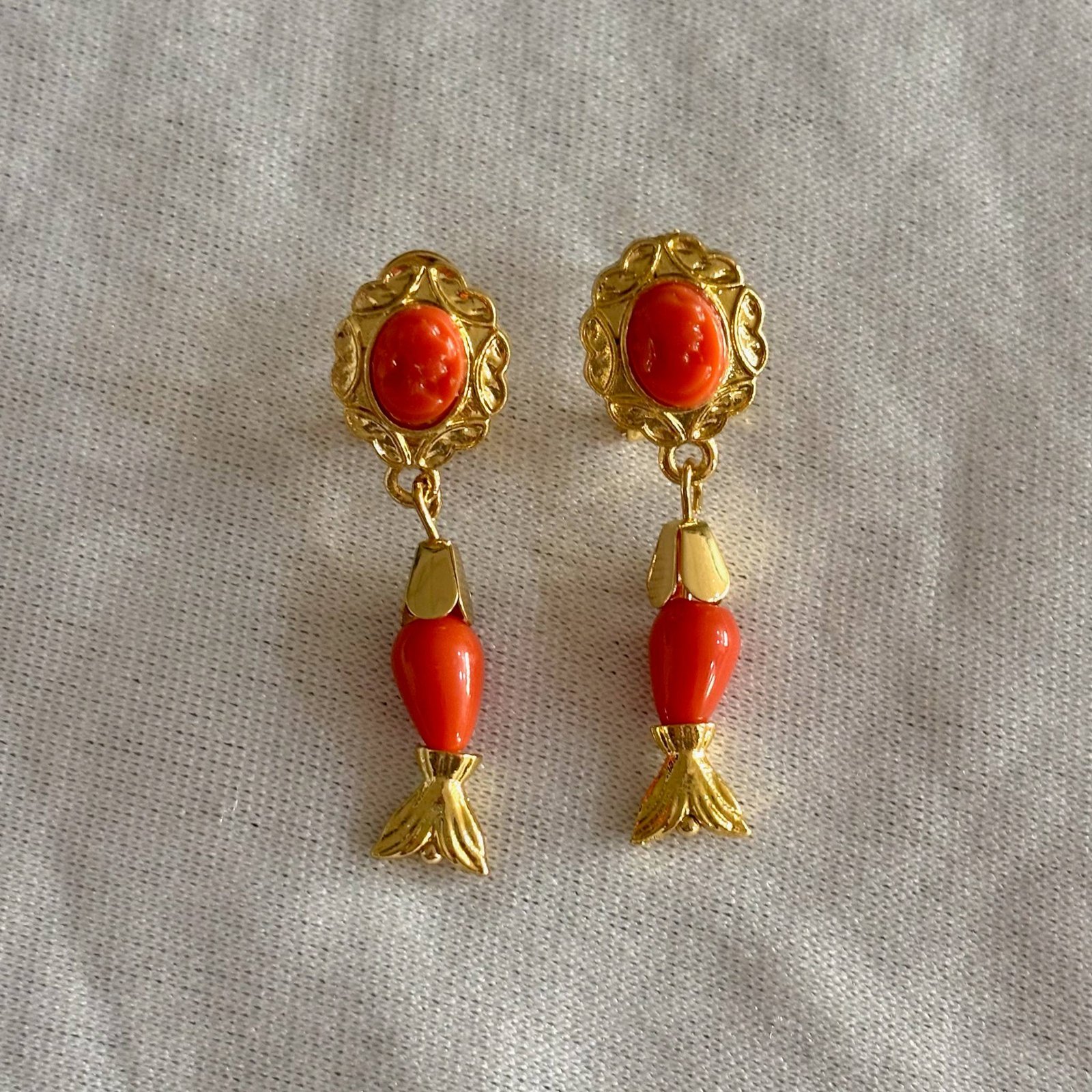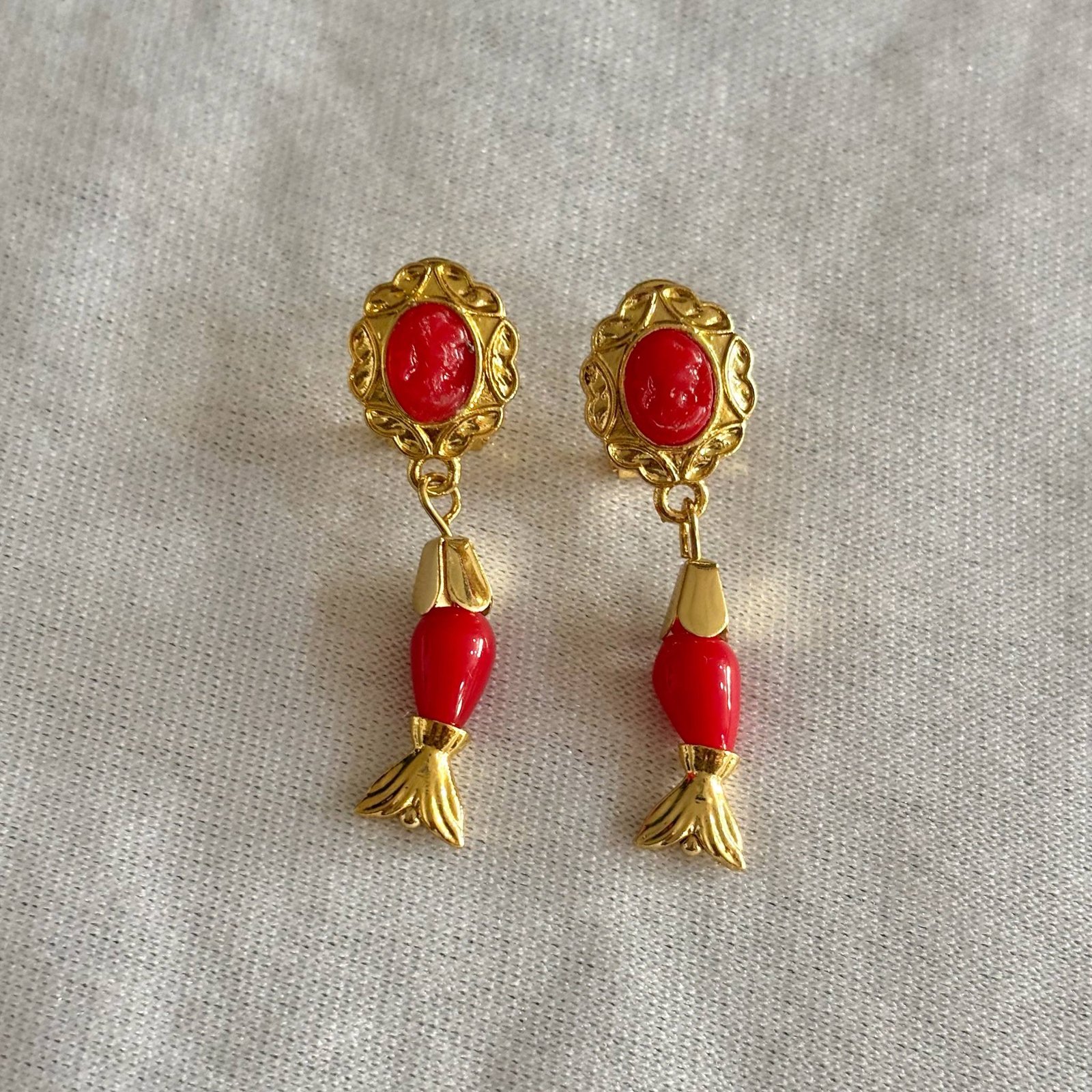 Pendientes pequeños con forma de pez y una sola piedra colgante de coral. Disponibles en siete colores: rojo, fucsia, rosa palo, turquesa, blanco, negro y coral. Un detalle delicado y colorido que aporta un toque fresco y divertido.