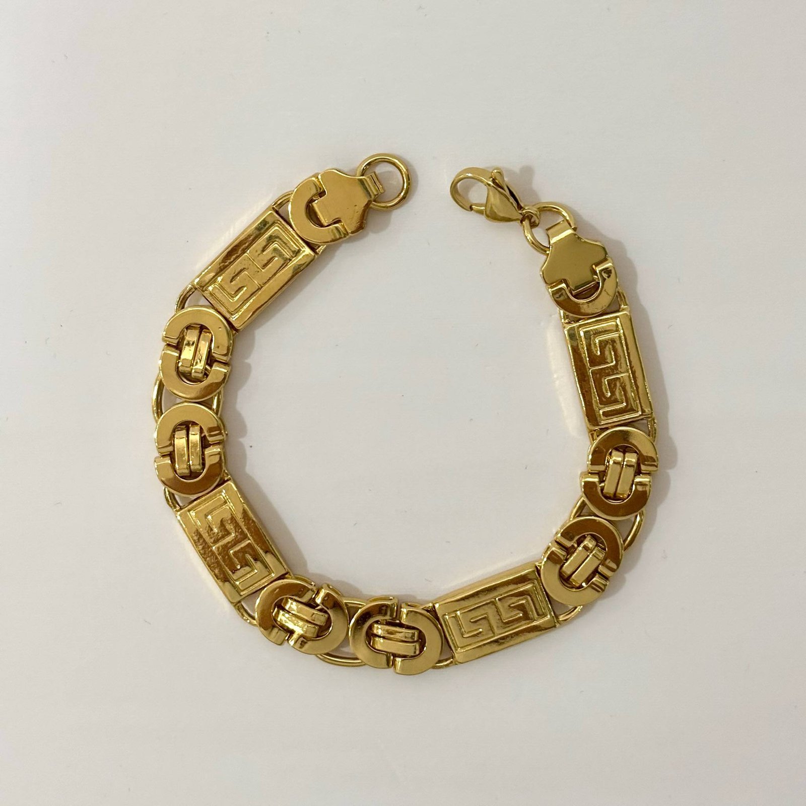 Pulsera plana en acero inoxidable con labrado estilo Versace, modelo 1. Un diseño elegante y atemporal que combina lujo y estilo masculino.