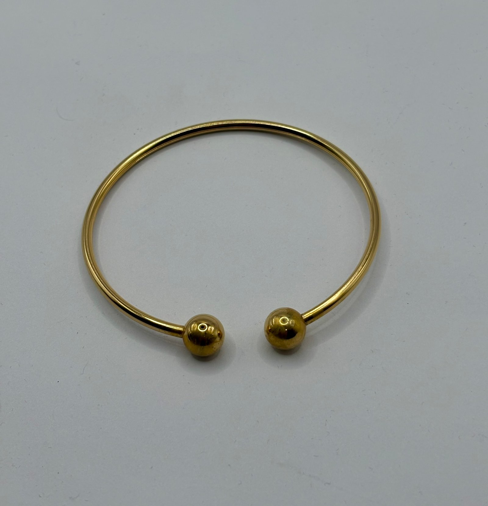 Este distinguido brazalete de caballero está elaborado en acero inoxidable tono dorado, combinando resistencia y sofisticación en una pieza de diseño refinado. Su estructura rígida y estilizada presenta una silueta abierta que aporta un carácter moderno y minimalista, mientras que sus extremos esféricos pulidos añaden un toque de elegancia sutil y masculina. El acabado brillante realza su presencia con un lujo discreto, ideal para el hombre que aprecia los detalles finos y la estética contemporánea. Su confección en acero inoxidable garantiza durabilidad, resistencia al desgaste y un brillo perdurable, convirtiéndolo en el complemento perfecto tanto para atuendos formales como casuales. Una joya sobria, imponente y atemporal que refleja seguridad, estilo y distinción.
